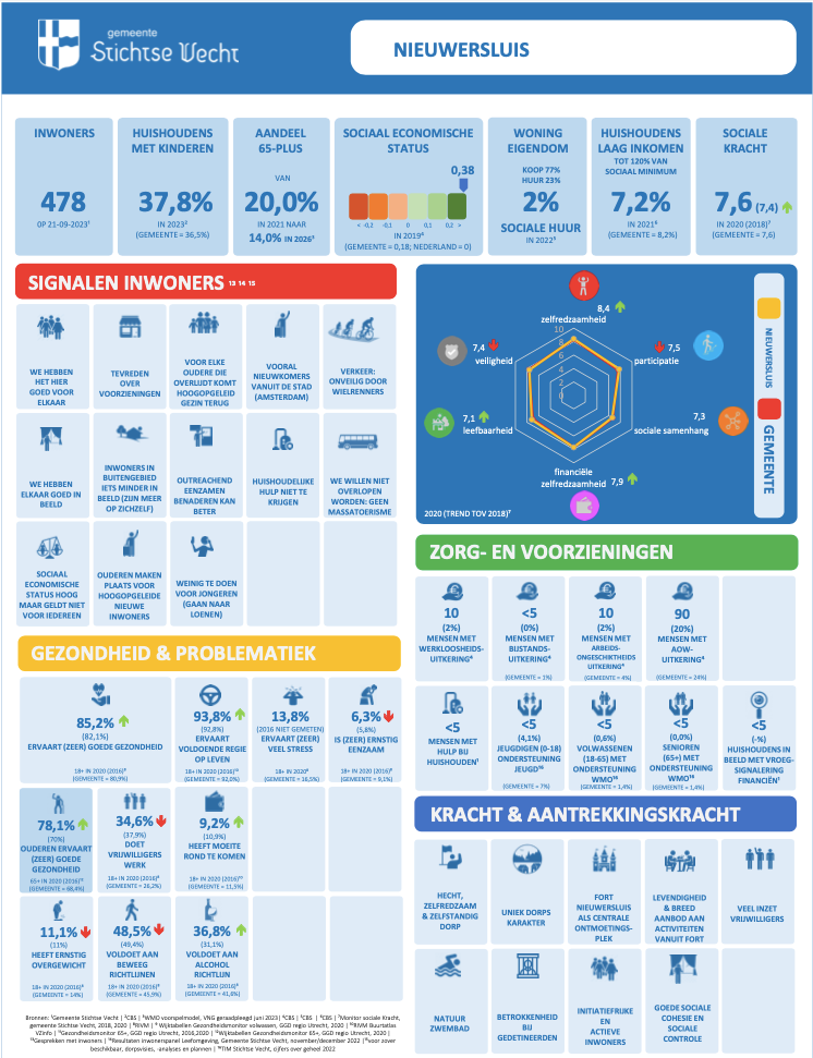 Nieuwersluis is een heel bijzonder dorp aan het mooiste stukje van De Vecht. Jong en oud leeft naast en met elkaar. Er is een grote diversiteit in beroepen en belangstelling, maar het oog voor natuur, cultuur en kunst is een verbindende factor. Samen zijn wij heel zuinig op ons dorp, wij zijn gastvrij, het dorp bruist bij tijd en wijlen, maar moet ook leefbaar blijven. Het Fort Nieuwersluis en ’t Dorpshuis zijn dé ontmoetingsplek, hier worden allerlei activiteiten georganiseerd hetgeen zorgt voor de sociale cohesie in ons dorp. Het Bestuur van de Vereniging Nieuwersluis Bestaat houdt nauw contact met de inwoners en heeft periodiek overleg met de Gemeente en waar nodig met andere overheden, zoals de Provincie, Rijkswaterstaat en Waternet.